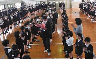今日は、離任式でした。南小学校から9名の先生方が転出・退職されました。体育館において全校児童の前で、お一人ずつ話をされました。在任期間中の思い出を話す先生、自作の詩を読む先生、一学年ずつ思いを伝える先生、それぞれでしたが、皆さん共通するメッセージは、南小学校が大好きだったということです。9名の先生方の新天地でのご活躍をお祈りいたします。