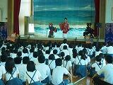 本日、鑑賞教室を行いました。本年度は、沖縄の民謡や舞踊に親しむことをテーマに「美(ちゅら)」の皆様をお招きして楽しいひと時を過ごしました。