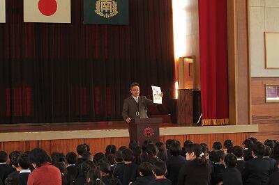 その後、校長先生から2学期前半を振り返ったり、年末年始の行事のお話がありました。1月9日の2学期後半開始日に元気に登校できることを願っています。