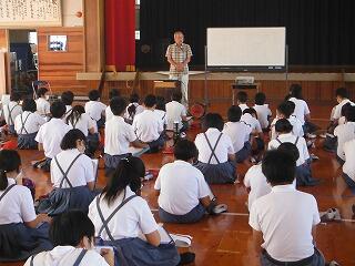 7月に入りました。昨日からいい天気が続いています。6年生のこすもす科では、「小林の3H2O」という学習があります。3H2Oとは、小林市が他地域に自慢できる「花」「星」「蛍」「水」の総称です。今日はその中でも「水」についての学習を行いました。湧水インストラクターの清水洋一さんを講師に、小林市の湧水について学びました。ビデオを見た後、駅南公園へ移動し、湧水を見学しました。小林市のよさを感じ取れた時間を過ごしました。