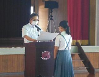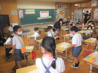 今日が夏休み前最後の授業日でした。朝の全校朝会では、校長先生の話と表彰、夏休みの過ごし方についての話がありました。今年度購入した大型扇風機が活躍しました。給食はカレーとフルーツあんにんで、子どもたちは喜んで食べていました。小林市は2学期制なので、通知表はありません。やっと来た夏休み。新しい生活様式を続けながら有意義に過ごしてほしいです。学校スタートは8月25日です。