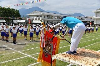 南小学校秋季大運動会は、9月20日(日)に実施し、無事終えることができました。天候が心配されましたが、朝の小雨模様から回復し、閉会式では、日が差し、計画どおり進行することができました。今年度の運動会は、規模を縮小し、観覧に関して制限を設ける中での実施でしたが、児童はもてる力を発揮し、充実した見応えのある運動会を作りあげることができました。これも一重に、保護者の皆様、地域の方々のご理解ご協力のおかげです。ありがとうございました。