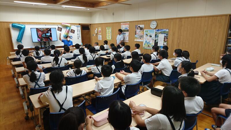 10月12日(木)に、「クルーズトレイン ななつ星 in 九州」が小林駅に停車し、13時30分から式典が開催される計画ですが、それに先立ち、2時間目に5年生を対象とした学習会を行いました。講師は皆さんおなじみ、南校区まちづくり協議会の吉村秀昭会長です。▼列車の概要や利用料金、ななつ星が吉都線を走るようになった経緯等々、詳細にお話ししてくださいました。お話がひと段落すると、時間が足りなくなるほどに子どもたちからの質問が相次ぎましたが、さすが10年間にわたってななつ星関連の取組を推進していらっしゃる吉村会長。とてもとてもお詳しく、ひとつひとつに丁寧にお答えいただきました。▼驚くような話、裏話等々たくさん聞かせていただいたので、5年生の保護者の皆さんは是非お子さんに聞いてみてください。【校長】