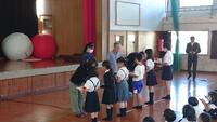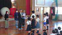 南小校区社会福祉協議会の皆さんから、たくさんの本をいただきました。昨年度は、傘を60本も寄贈いただいています。▼本日は、朝から来校いただき、贈呈式を行いました。6年生の代表児童に脇元会長から目録が渡され、各学年の児童に、かわいらしくリボンがかけられた本が手渡されました。▼会の冒頭で脇元会長から児童に対してお話をしていただいたほか、幸田区長さんからはおすすめの本の紹介もあり、児童は身を乗り出してお話に聞き入っていました。▼6年生の丸尾さんが児童を代表してお礼の言葉を述べましたが、原稿ももたず、実に豊かな表現で、見事に感謝の思いを伝えてくれました。こうした丸尾さんの素晴らしい力も読書を通して培われたものかもしれません。▼南小には、年度半ばにして既に100冊以上の図書を借りている児童が、全校児童291名中103名もいます。読書に最適の季節となりました。家族で読書を楽しんでみてはいかがでしょうか。【校長】