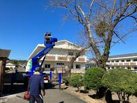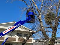 日曜日に、坂元PTA会長、柳田PTA副会長、そしていつも何かとお世話になっている押川さん(由磨君のお父さん)に来校いただき、教頭立会いのもと、枯れて危険な状態にあった桜の古木4本を伐採していただきました。2本は根元から伐採、2本は危険な枝を落としていただきました。▼柳田副会長には、いつも学校の環境面に気を配っていただき、即座に対応していただいています。▼休日に、高所作業車まで導入しての大変な作業。ありがとうございました。これから子どもたちもすっかり安心です!【校長】