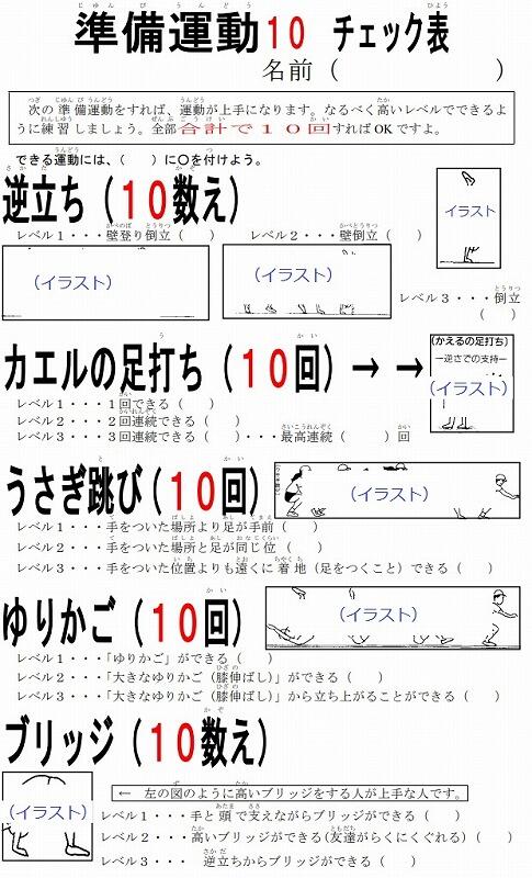 逆立ち カエルの足うち うさぎとび ゆりかご ブリッジ