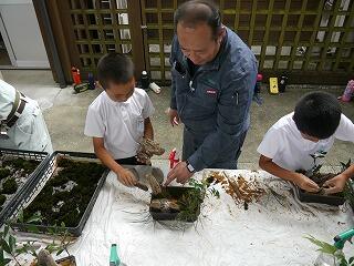 4年生は、盆景つくり 竹細工つくり 味噌づくり