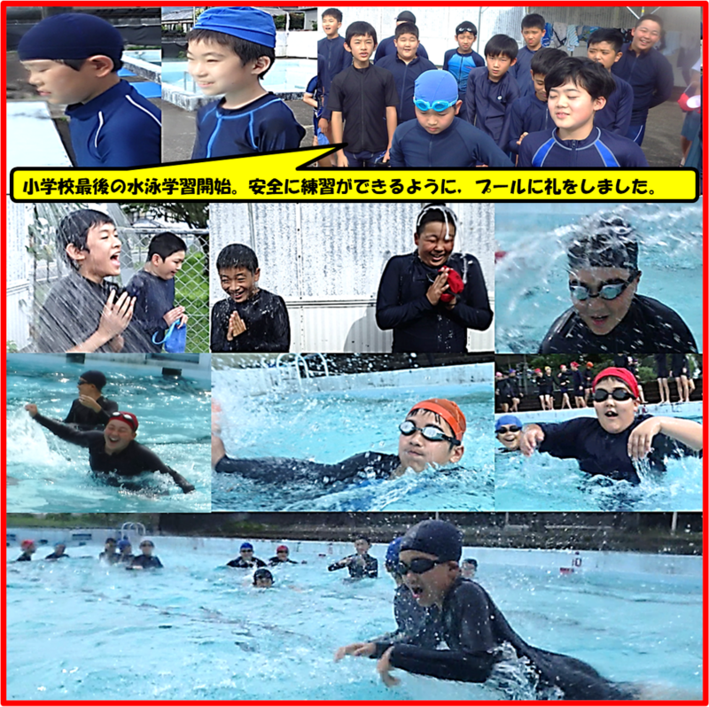 さあ,修学旅行の後はプール開き!みんなとても喜んでました。まずは水に慣れ,その後何回か泳ぐ練習をしました。そして,今年初の泳力調査。これから夏休みまで,泳力別でグループを作り練習していきます。少しでも長く泳げるよう指導していきます。