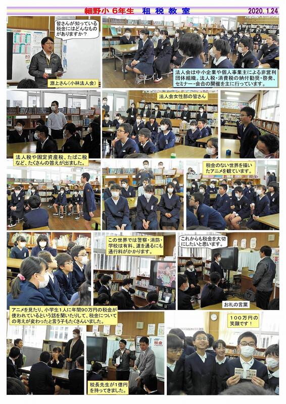 6年生は、社会科の時間に、税金を納めることは国民の義務の一つであることを学んでいます。この学習に関連し、税金の種類や税金がなくなるとどうなるか等を資料やDVDを用いて分かりやすく説明していただきました。