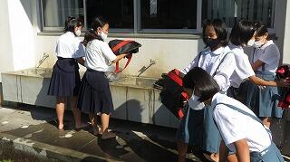 この日は、衣服の汗汚れなどを洗濯して清潔に保つことの大切さを学びました。