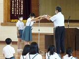 月に1回、高学年の児童が朝の登校時に校門に立ってあいさつ運動をしています。