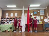 そして、校長先生より団旗が授与され、団長、副団長による決意表明がありました。その後、団別の結団式ではリーダーによるあいさつも一人ずつありました。