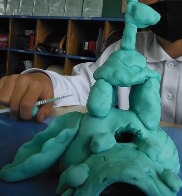 イメージを膨らませ、ねん土を高く積み上げました。