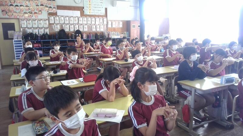 実際に手話と指文字を使って、自分の名前や好きなものを伝える練習行いました。3年生のときに学んだ手話を覚えている子も多く、スムーズに手話をすることができていました(*^^*)