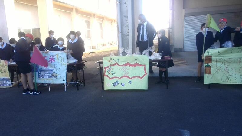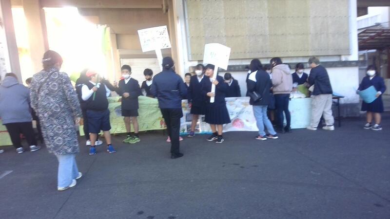 また1時間目には、5年生が収穫したもち米の販売を行いました。自分たちで袋につめ、袋に貼るシールや宣伝用の広告なども5年生が作成しました。たくさんの方が買いにきてくださり、すぐに完売しました。ありがとうございました。