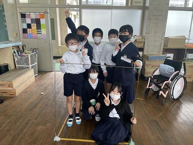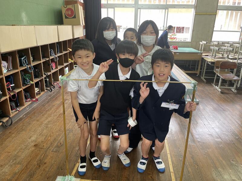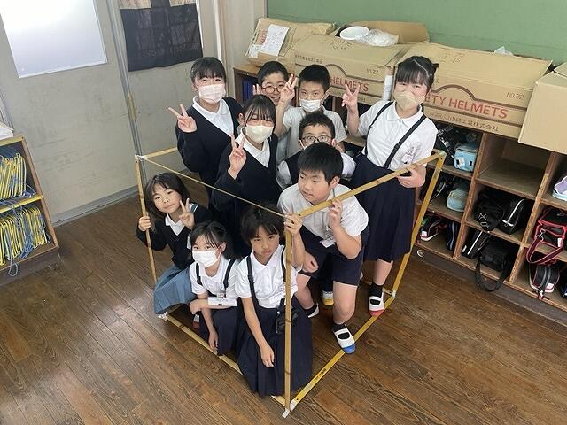 算数「体積」の学習で、1㎥をつくる活動を行いました。みんなで協力し合って作りました。