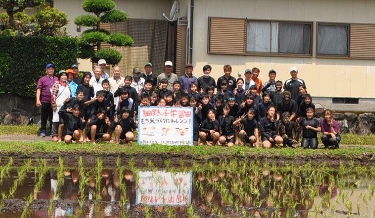 6月20日(火)に田植えをしました。JA青年部の方々、まちづくり協議会の方々にサポートしてもらいながら、田植えを行いました。最初は泥の感触に悲鳴をあげる姿も見られましたが、少しずつ泥の感触にも慣れ、植えるペースも手際も良くなってきました。