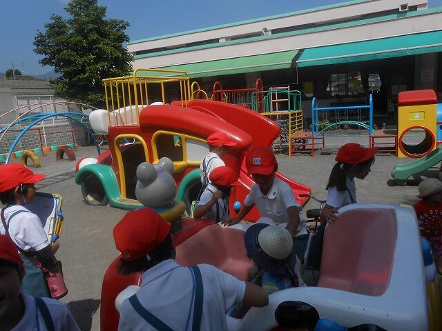 「ほそのほいくえんは、ことしで51さいになるそうです。えんじは77名。先生は30名いるそうです。たくさんのゆうぐと大きいプールがありました。」
