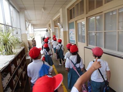 6月12日、子どもたちが楽しみにしたいた「まちたんけん」に行きました。スーパーマーケットやドラッグストアに行くチームと、中学校や交番・郵便局に行くチームの2つ分かれて出発です!この日はお天気にも恵まれ、少し歩いただけでも汗が出てくるほど暑かったです。目的地に着くと、中を見学したり、働いている方に質問をしたりしました。