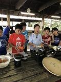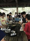 二日目の昼食の様子。 自分たちで作ったご飯は美味しいでしょうね。