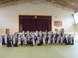 学年全体で集合写真を撮影し、体育館で退所式を3校合同で行いました。