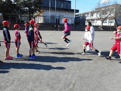 4年生は150回を目標に、長縄の練習を頑張っています。現在の最高記録は、149回。