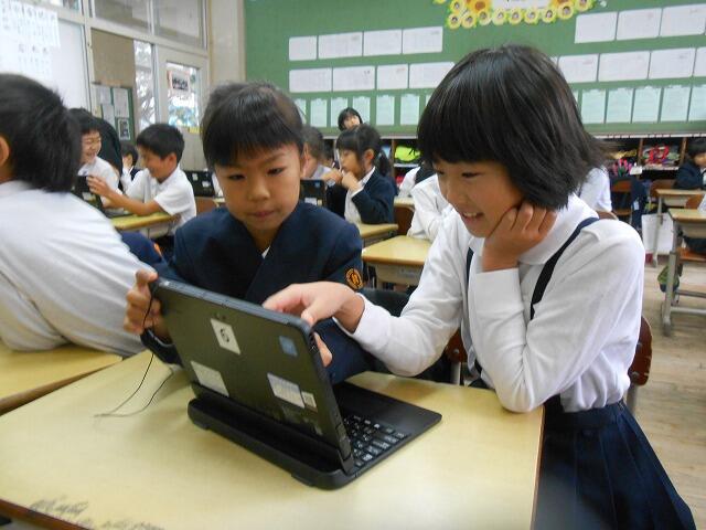 2年生は、1組2組合同で、タブレットパソコンの使い方を学びました。