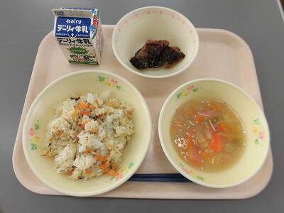 七草がゆではなく、七草ごはん。教室をまわってみましたが、好評でした。