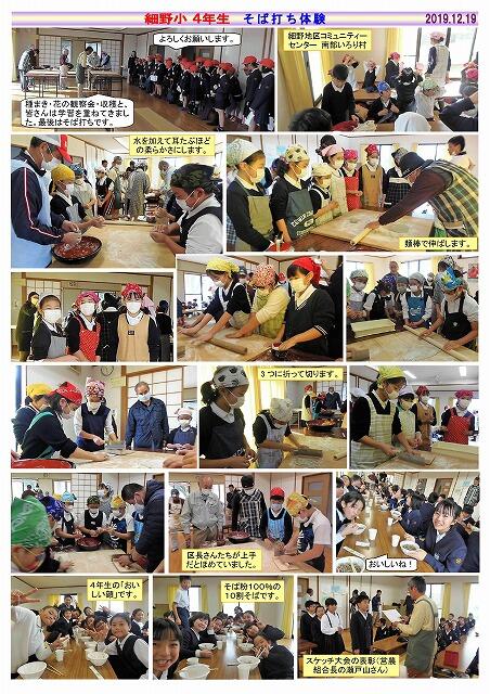 いよいよ最終章です。11月19日(木)に細野営農組合の方々、区長様、地域の方々の御協力いただき、そば打ち体験を行いました。最後においしいそばを食べることができ、みんな大満足です。