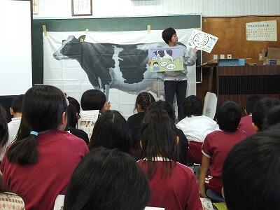 地域の酪農家の皆さんやJA小林の方、県や市の畜産関係の方々に乳牛のことをたくさん教えてもらいました。乳牛の食べるえさの量や胃袋の大きさにはびっくりしました。3年生みんなでバターを作って食べたり牛乳もちを食べたりしました。