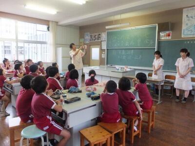 学校医(歯科)の先生と衛生歯科助手のみなさんに、よくかむことの大切さや上手な歯の磨き方を教えていただきました。子ども達は手鏡を持って、自分の歯を観察し、みがき残しはないかを確かめながら歯みがきをしていました。いつまでも丈夫な歯でいられるように、しっかりと歯みがきをしてほしいと思います。