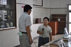 見学後の質問タイム:「1日何足できるのですか?」→「12万足です。小林市民約4万人の3倍ですよ。」