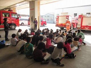 人々の暮らしを守る消防署で説明を聞き、仕事の様子を見学しました。初めて消防署に行く子ども達にとって、消防署の仕事内容にも興味津々でした。消防署の中にある通信指令室や消防車・救急車からもたくさんの発見があったようです。