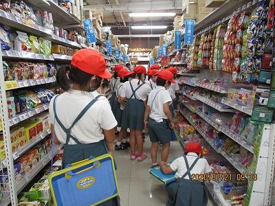 教科書や本やタブレットを使っての調べ学習に加え、実際のスーパーマーケットを見学させてもらい、お客様のことを考えた様々な工夫について、店長さんから分かりやすく教えていただきました。