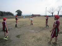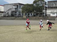 体育では「タグラグビー」をしています。タグラグビーは、ラグビーと同じ楕円形のボールを持って走り、相手をかわしたり、パスをしたりしながらゴールに向かってトライ(得点)をするスポーツです。腰に左右2本のタグをつけ、タックルの代わりに相手のタグを取って守ります。しっぽとりやボールを投げたりキャッチしたりというのを繰り返し練習して、今週からはミニゲームに入りました。楕円形のボールは投げるのもキャッチするのも難しく、トライすると歓声があがっています。