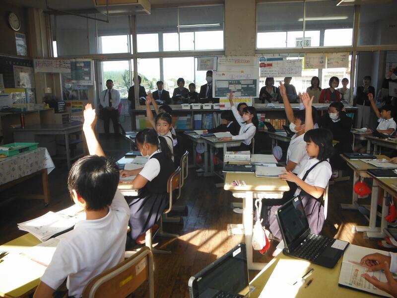 2学期の目標にどんな自分になりたいかしっかり書き、そんな自分になるためにどんなことを頑張ったらよいかについて考えました。お友達同士で教え合いながら「かかわる力」、最後まであきらめないで何にでも取り組む「やりぬく力」などいろいろな力が身に付いてきました。毎日の学習を落ち着いてじっくり取り組んでいます。11月6日には、市内の教職員の方々がたくさん授業の様子を見に来て下さいました。
