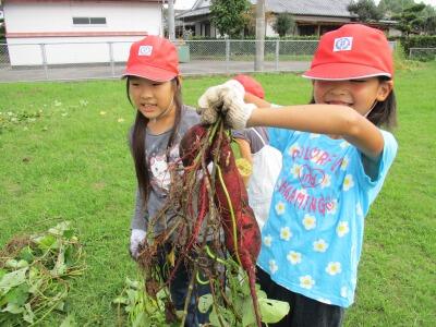 2年生は、生活科の野菜を育てる学習でさつまいもの収穫を行いました。