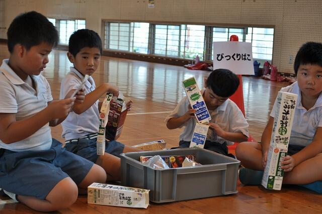 「びっくりばこ」 牛乳パックを切ってつなげるよ。