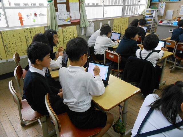 2年生は、1組2組合同で、タブレットパソコンの使い方を学びました。
