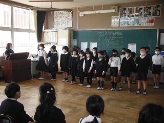 生活科の時間に、1年間の学習のまとめとして「できたよ発表会」を行いました。この1年間を振り返って心に残っていることを1人ずつ発表したり、それぞれできるようになったことをグループに分かれて披露したりしました。なわとび、かけ算、鍵盤ハーモニカ、音読などできるようになったことがたくさんあります。そんな学びを緊張しながらも自信をもって堂々と発表することができました。終わったあとの子どもたちの表情は、皆誇らしげで、満面の笑みがこぼれていました。