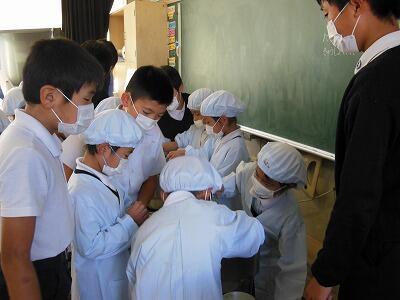 10月23日から、1年生による給食当番が始まりました。初めて給食着を身に付け、わくわくドキドキしながら、給食室へ向かいました。食器かごや食缶が重いけれど、ペアになって力を合わせ、慎重に運びます。教室では、当番以外の子ども達が、今か今かと待っていました。上級生に助けられながら、配膳を行いました。来年からは、自分たちだけで何もかもやれるようにしたいです