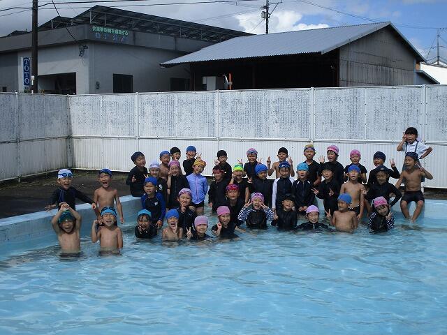 体育では、小プールでもぐったり浮いたり、みんなで水遊びを楽しみました。はじめは不安そうな表情の子もいましたが、だんだんと水に慣れ、夏休み前には、伏し浮きやばた足、け伸びもできるようになってきました。