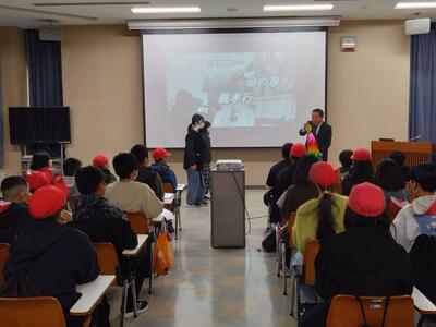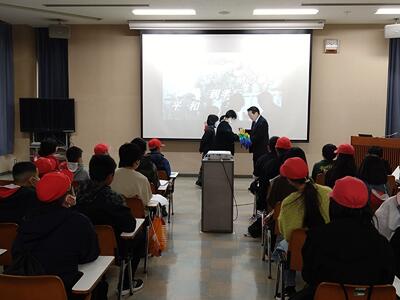知覧特攻平和会館で平和学習を行いました。展示や講話を通して、戦争の悲惨さや命の尊さについて深く考える時間となりました。子どもたちは真剣な表情で話を聞き、平和の大切さを改めて感じ取っていました。学習の最後には、心を込めて折った千羽鶴を会館へ贈呈しました。「平和への願いを込めて」という思いがしっかりと伝わる瞬間でした。これから、みんなで昼食タイム。広い食堂で、仲間と一緒に楽しく食事をとります!