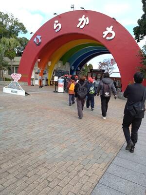 いよいよ修学旅行の最後の見学場所、平川動物園に到着しました!入口の大きな虹のゲートが出迎えてくれ、気持ちもさらに高まります。これから園内を回り、たくさんの動物たちと出会います。ライオンやキリン、ゾウなど、普段なかなか見ることのできない動物たちを間近で観察できるのが楽しみです。広い園内からは、遠くに桜島の姿も見え、自然と動物、そして仲間との時間を満喫できる最高のロケーション。「どんな動物がいるかな?」「どんな発見があるかな?」と期待でいっぱいです!
