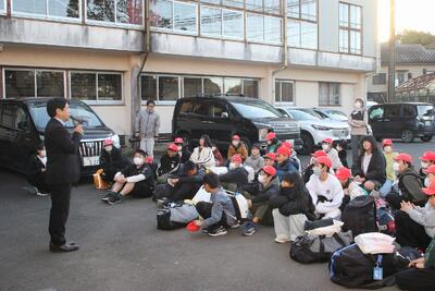 6年生が、2日間の修学旅行を終えて学校に帰ってきました。荷物を抱え、整列して先生の話を聞く姿からも、充実した時間を過ごしたことが伝わってきます。少し疲れた様子もありますが、それ以上に「やりきった!」という達成感が感じられる場面です。この修学旅行で学んだこと、体験したことは、きっとこれからの学校生活に大きな力になるでしょう。保護者の皆様、準備やサポートありがとうございました。