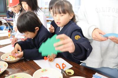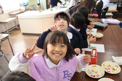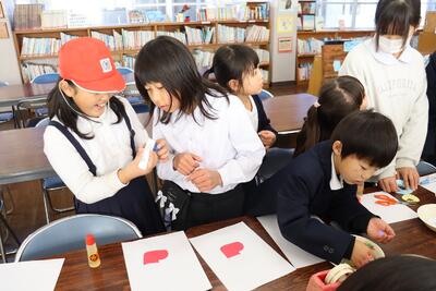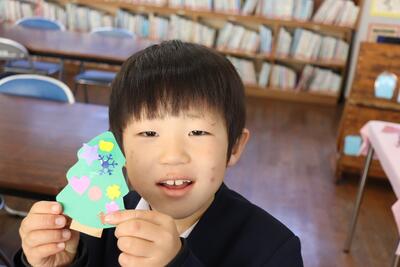 今日の昼休みに図書室で楽しいクリスマスイベントが行われました。色とりどりの材料を使って、ツリーやリースなどを自分のデザインで仕上げていきます。紙やシールなどを組み合わせて、世界に一つだけのオリジナル作品が完成しました。子どもたちは「どんな飾りにしようかな?」と相談しながら、工夫を凝らして作っていました。図書室が一気にクリスマスムードに包まれ、見ているだけでワクワクする時間になりました。完成した作品は、どれもとても素敵でした!