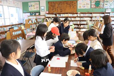 5年生は、中学校の先生をお迎えして、英語の授業を行いました。普段とは少し違う雰囲気に、子どもたちは興味津々。先生の発音や表現を聞きながら、英語の楽しさを実感していました。授業の中では、ゲームを取り入れた活動もありました。カードを使った英単語ゲームや、ペアでのやり取りなど、体を動かしながら英語に親しむ時間に、教室はとても活気にあふれていました。