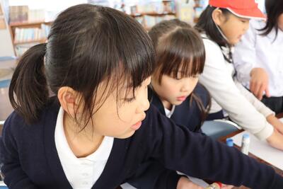 2年生は音楽の授業で、鍵盤ハーモニカを使って「こぎつね」の演奏に挑戦しました。この曲は指使いが難しく、音のつながりもきれいに出す必要がありますが、子どもたちは集中して練習し、少しずつ上手に弾けるようになっていきました。先生の指示に合わせてテンポをそろえる姿はとても真剣。「できた!」という達成感を味わいながら、音楽の楽しさを感じる時間となりました。