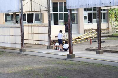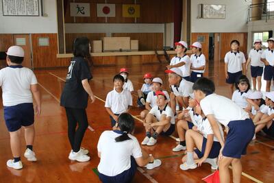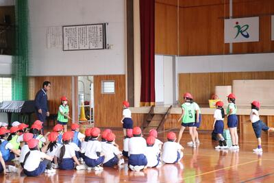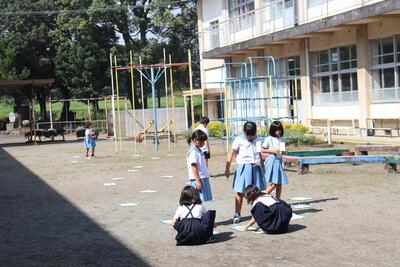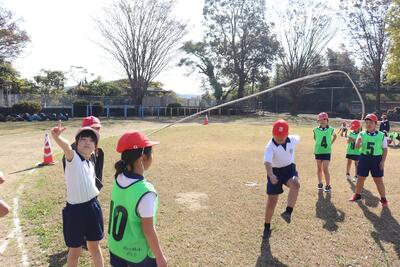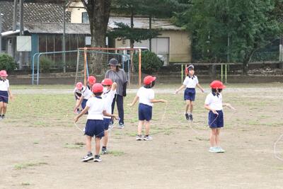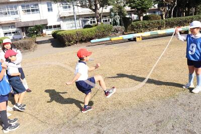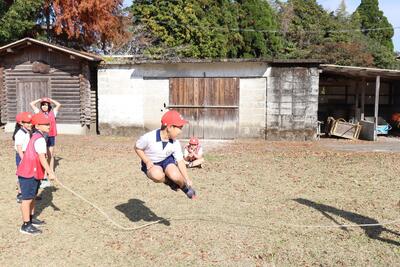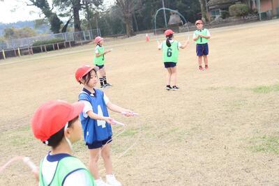 今日は、1年生と3年生が一緒に体育を行いました。1年生は、初めての長縄飛びでしたが、とても楽しそうに活動していました。