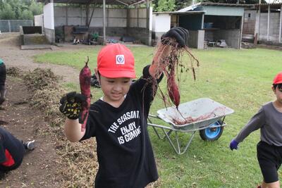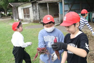 今日も暑かったけど、子どもたちは元気いっぱいでした。芋ほりに夢中になったり、幸ヶ丘小との交流で笑顔がはじけたりと、盛りだくさんの一日でした。